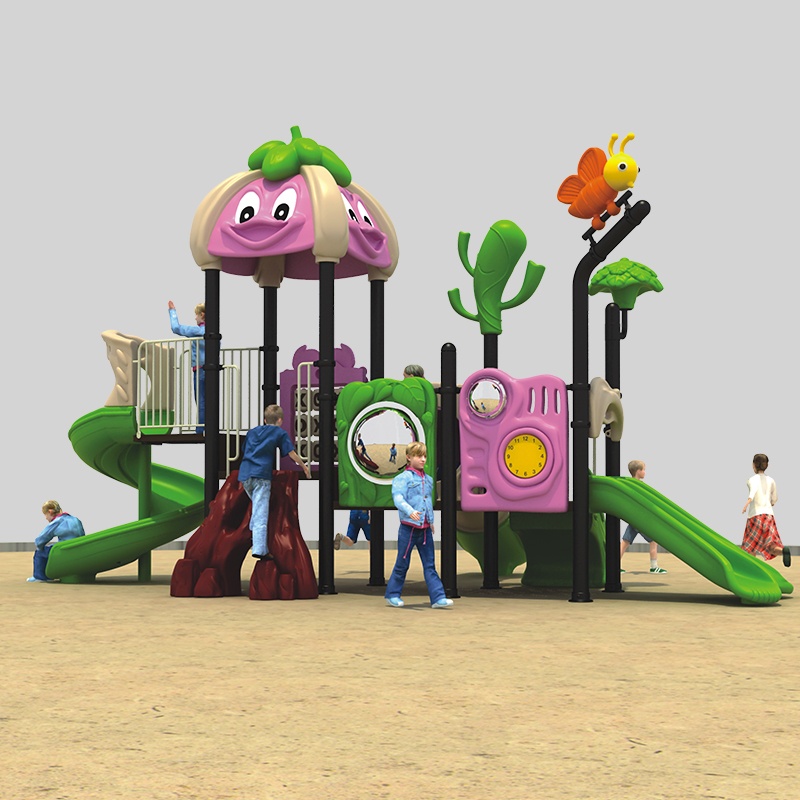 答:我们使用商业级 HDPE 塑料或镀锌钢来制作防褪色的户外游乐场设备滑梯。